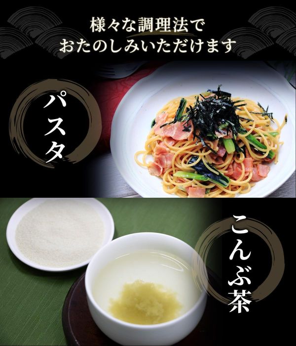 適用於昆布茶、味噌湯、火鍋湯底,也能灑在義大利麵、炒飯或醃漬蔬菜上,