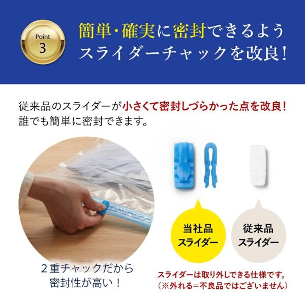 * 最高可壓縮至 1/4 體積:厚外套、針織衫也能壓縮,收納更有效率。