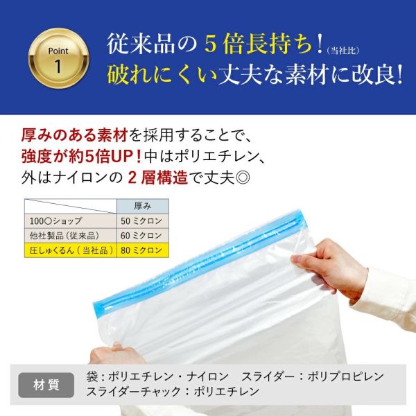 * 加厚耐用材質:雙層結構(PE+尼龍),比傳統壓縮袋厚 1.5 倍,耐用度提升 3–5 倍。